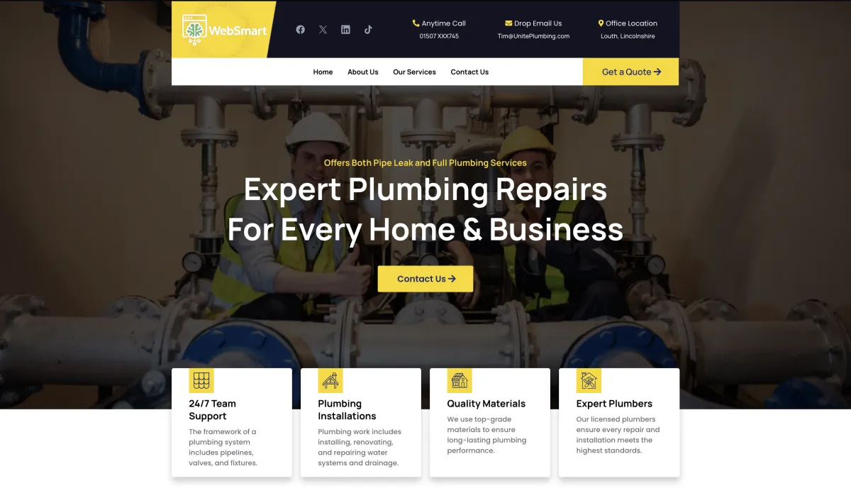 At WebSmart, we specialise in building high-performing websites and automation systems for local tradesmen and home service businesses across the UK. From plumbers and electricians to builders and cleaning companies, we help service-based businesses generate more enquiries, respond faster, and convert leads into booked jobs. Our websites are designed to look professional, build trust, and work seamlessly with smart automation that handles follow-ups, missed calls, and customer communication.