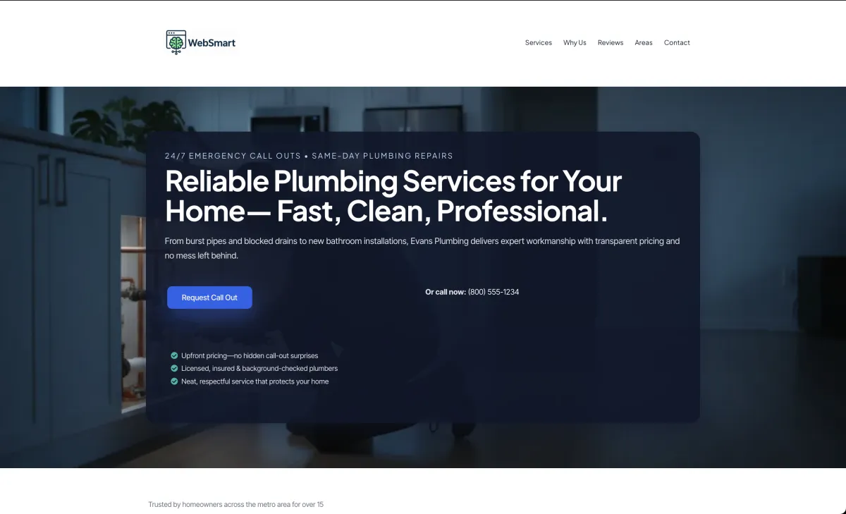 At WebSmart, we specialise in building high-performing websites and automation systems for local trades and home service businesses across the UK. From plumbers and electricians to builders and cleaning companies, we help service-based businesses generate more enquiries, respond faster, and convert leads into booked jobs. Our websites are designed to look professional, build trust, and work seamlessly with smart automation that handles follow-ups, missed calls, and customer communication.